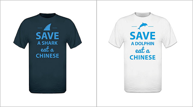 Trong số các sản phẩm áo thun in chữ của nhà bán lẻ Spreadshirt có những chiếc áo in các khẩu hiệu như “Cứu một con chó, xơi thịt một người Trung Quốc”, “Cứu một con cá mập, ăn thịt một người Trung Quốc” cũng như hình ảnh các ký tự tiếng Hoa được xếp tượng trưng tư thế giao hợp của con người kèm dòng chữ chú thích bằng Anh ngữ rằng “Giờ tôi đã hiểu tiếng Trung.”